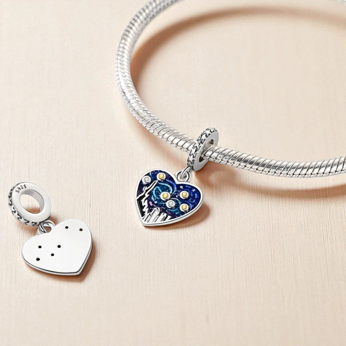 Ajoutez une touche d’art et de passion à votre bracelet avec ce charm Cœur Van Gogh en argent. Inspiré par les tourbillons expressifs et les couleurs intenses du célèbre peintre, ce bijou en forme de cœur évoque la force de l’émotion et la beauté du chaos créatif.
