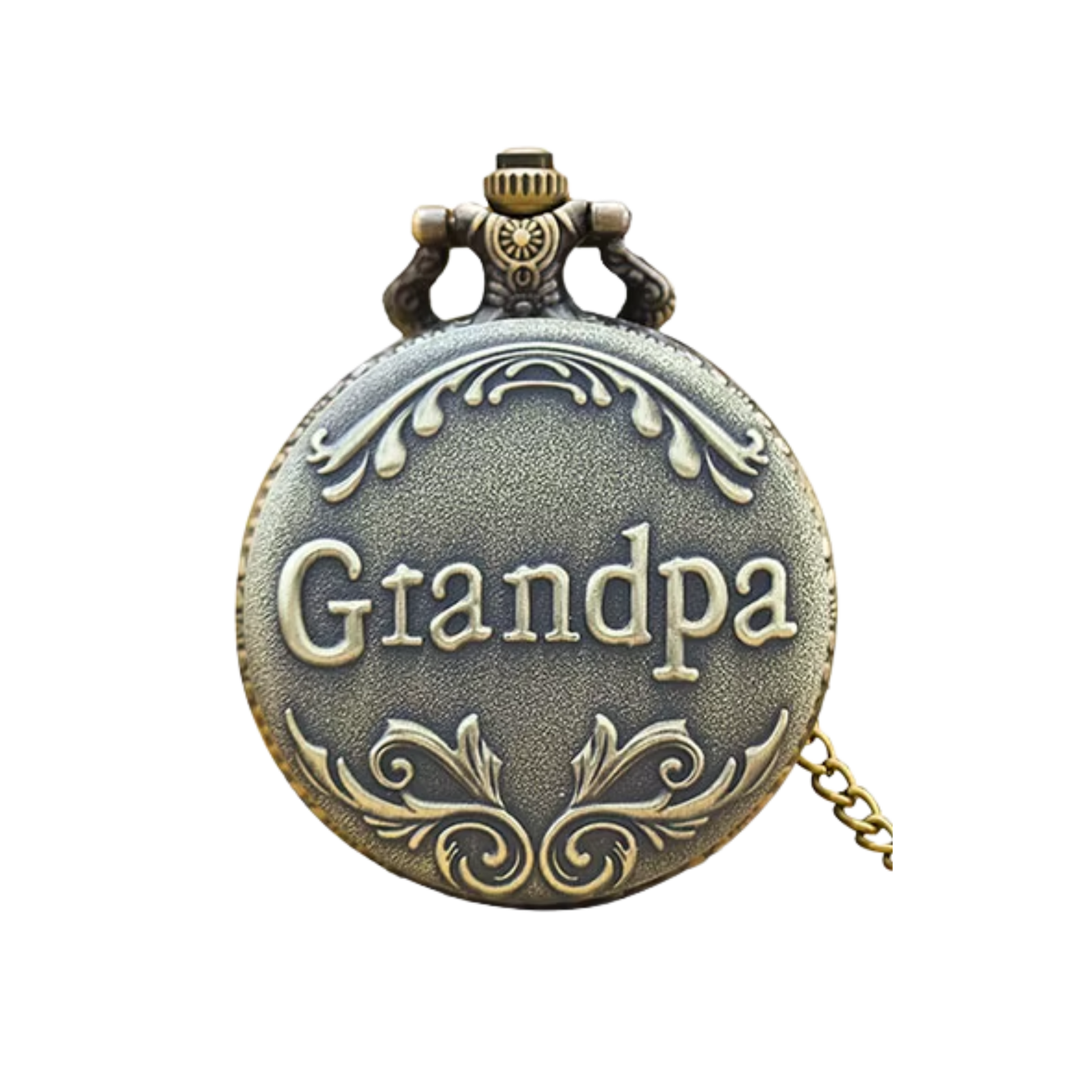 Offrez un cadeau intemporel et plein de charme à votre grand-père avec cette montre à gousset vintage gravée « Grandpa ». Son design rétro en métal bronze vieilli et ses motifs décoratifs en relief en font un accessoire élégant et chargé d’émotion, idéal pour marquer une occasion spéciale.
