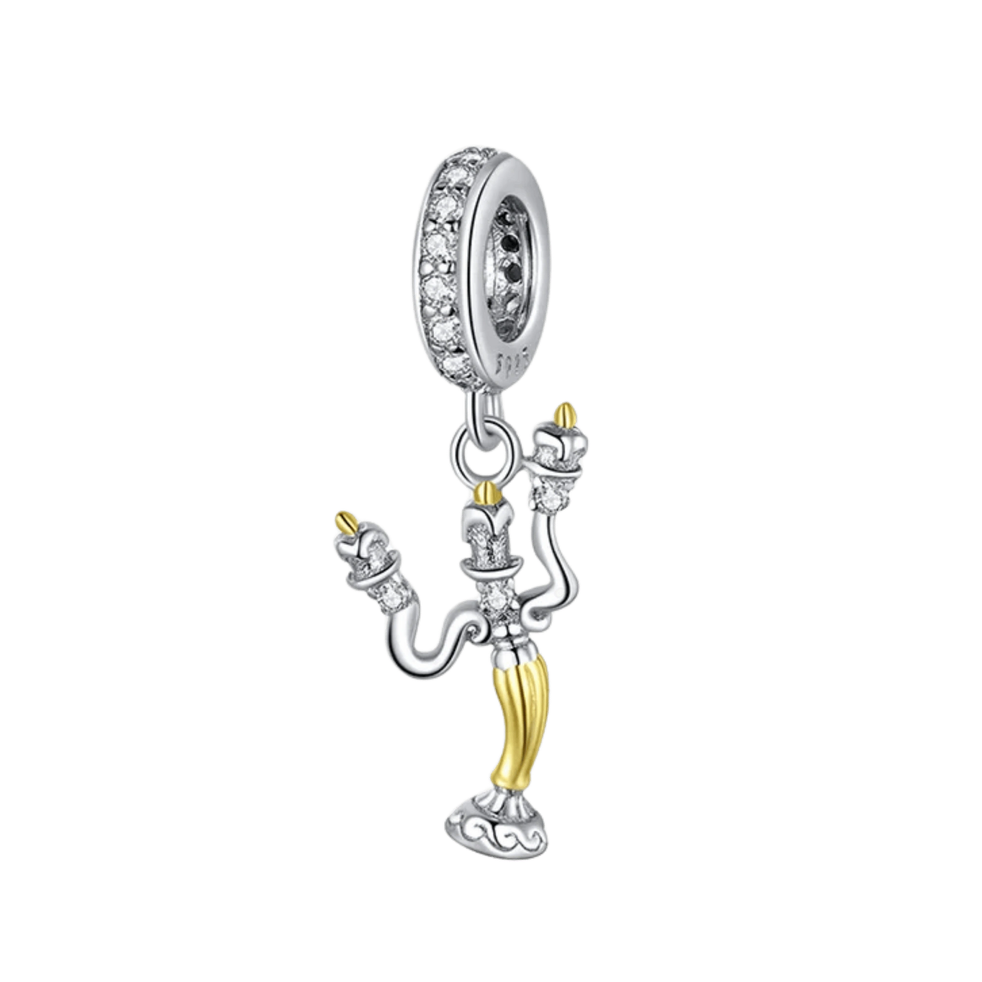 Ajoutez une touche de glamour scintillant à votre bracelet avec ce charm Chandelier en argent. Ce petit bijou raffiné représente un lampadaire à pampilles, délicatement orné de petites gouttes façon cristal, qui captent la lumière à chaque mouvement et apportent une élégance raffinée.