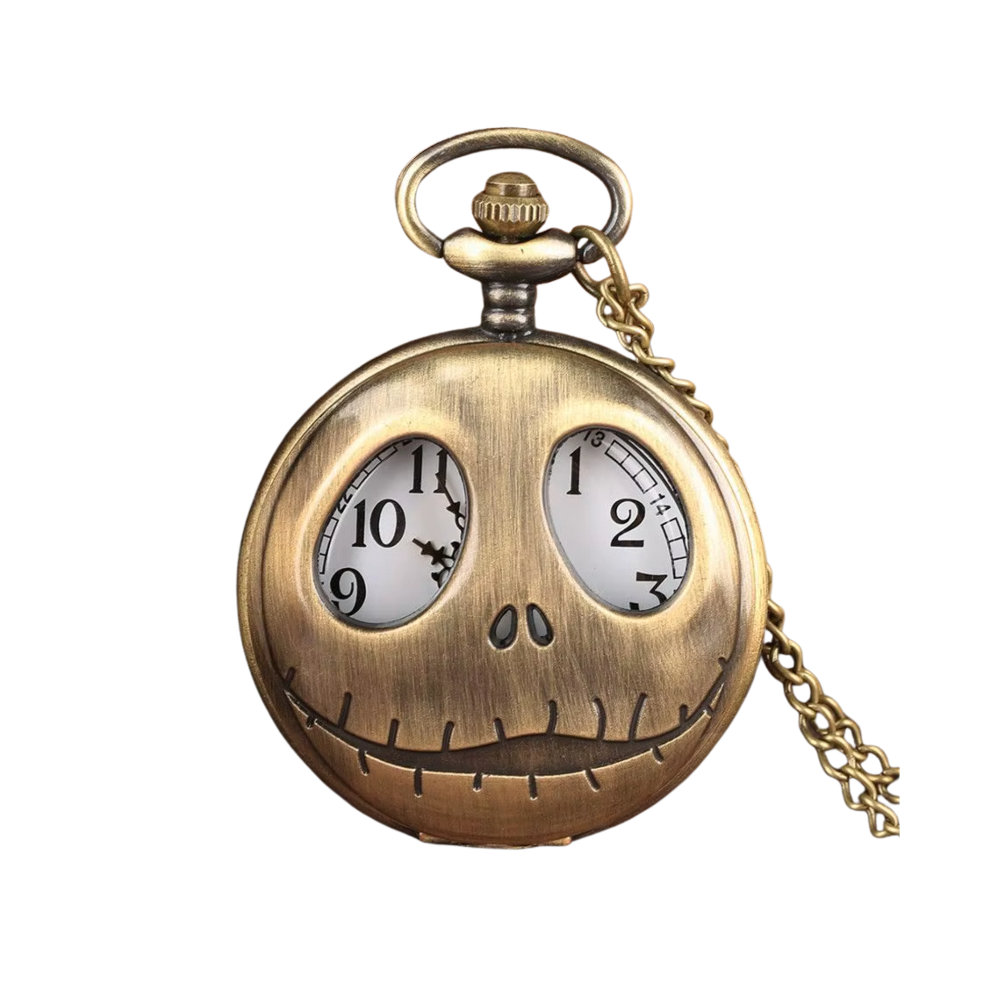 Cette montre “Jack Skellington” est idéale pour les passionnés d’univers fantastiques, les collectionneurs d’objets originaux et ceux qui aiment afficher un style affirmé. Portez-la en pendentif ou comme accessoire pour une touche gothique et élégante.